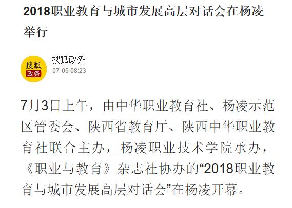 【搜狐政务】2018职业教育与城市发展高层对话会在杨凌举行